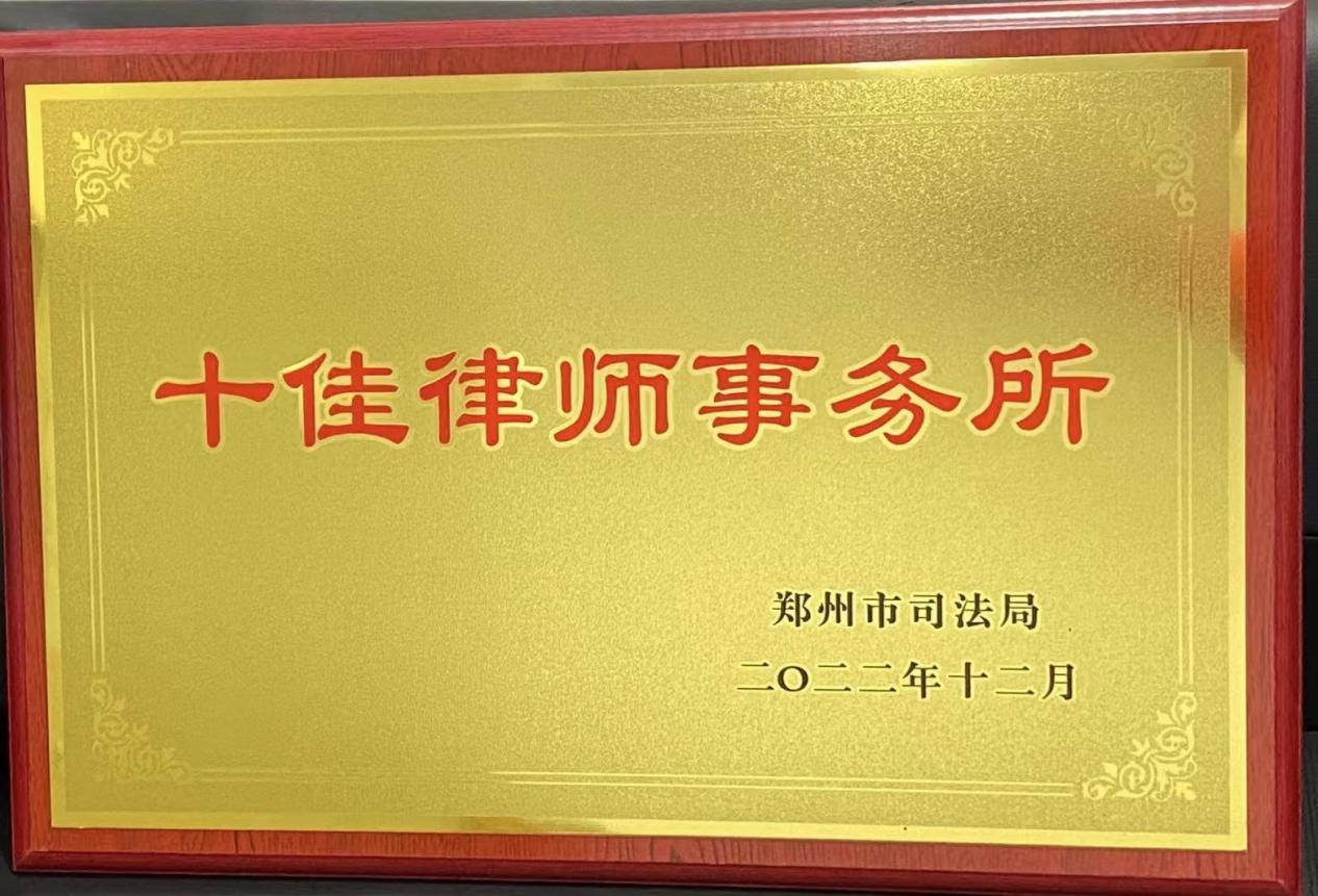2022年我所被郑州市司法局评为“十佳律师事务所”。
