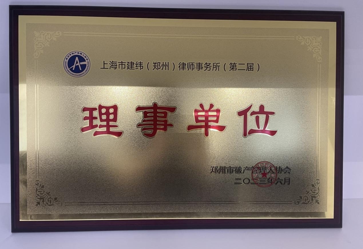 郑州市破产人协会授予上海市建纬(郑州)律师事务所理事单位