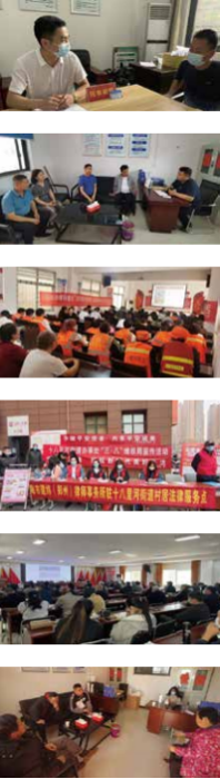 为积极响应司法局关于开展村(居)法律顾问工作的号召,我所以支部为单位,选派支部书记王胜利、高级合伙人党员律师丰备、晋一巍、吴娜丽、李鹏、胡永亮、王卫华、王振、付芳芳、李佩玲等十名成员精干党员律师、资深业务律师等为郑州市管城回族区十八里河街道下属的九个村(居)担任公益法律顾问。